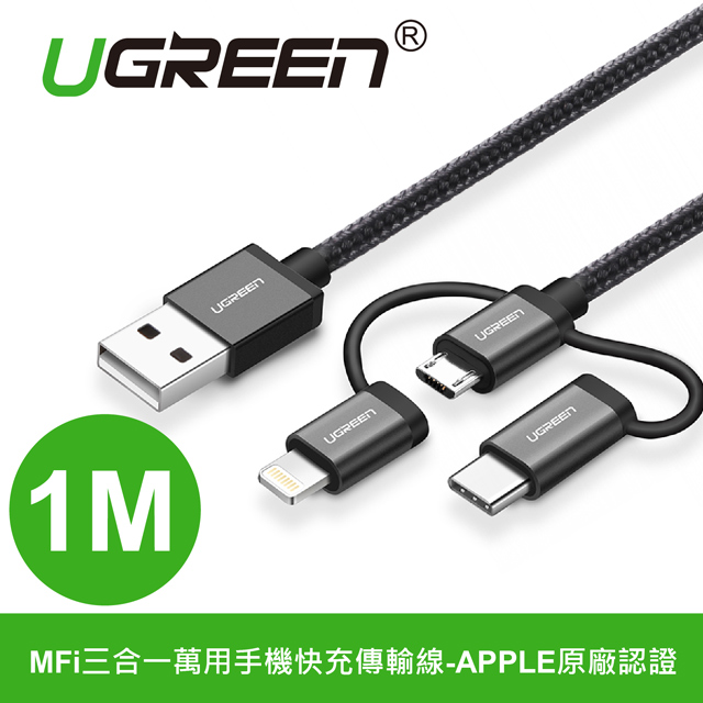• 綠聯 1M MFi三合一萬用手機快充傳輸線 BARID版