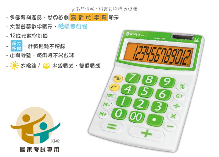 • 【KINYO】 繽紛彩漾護眼計算機-綠色(KEP-565)